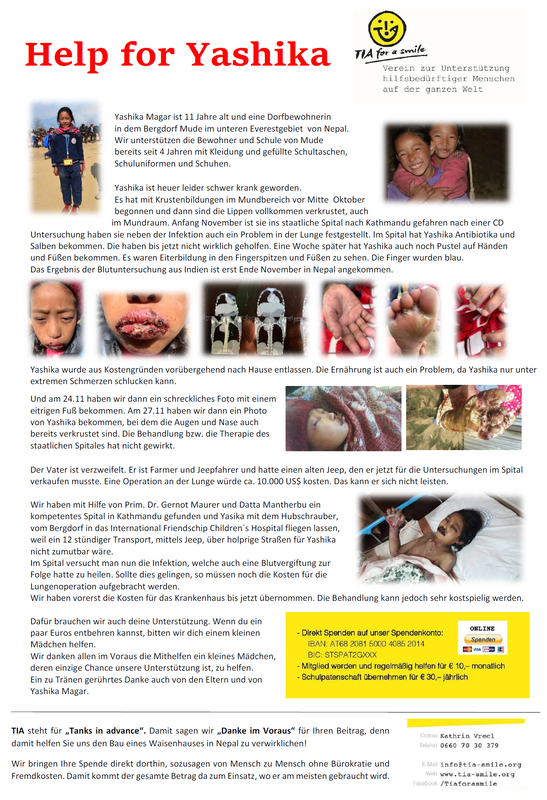 Hilfe für YashikaEinzelstück Designstudio5. Dez. 20191 Min. LesezeitYashika ist ein 11 jähriges Mädchen aus einem Bergdorf in Nepal. Unser Hilfe - Ihre Spende ist Ihre einzige Chance für Yashika zu überleben.